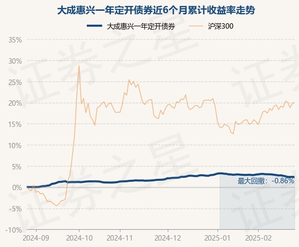 证券之星消息,2月27日,大成惠兴一年定开债券最新单位净值为1.0522元,累计净值为1.1737元,较前一交易日下跌0.07%。历史数据显示该基金近1个月下跌0.59%,近3个月上涨0.62%,近6个月上涨2.36%,近1年上涨4.44%。该基金近6个月的累计收益率走势如下图: