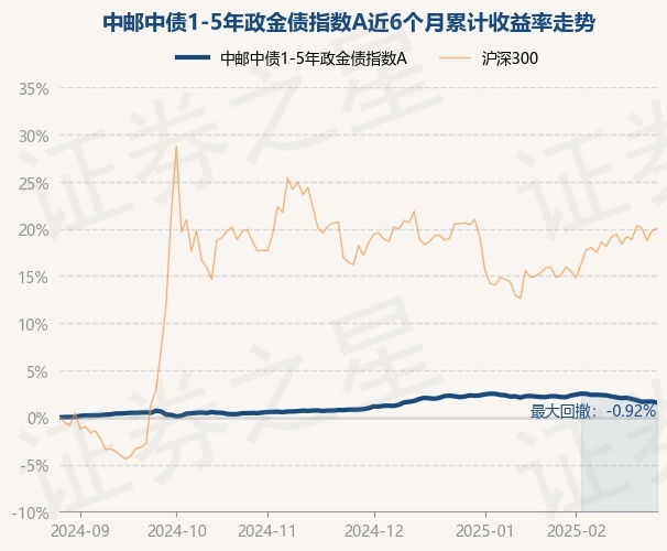 证券之星消息,2月27日,中邮中债1-5年政金债指数A最新单位净值为1.0941元,累计净值为1.1181元,较前一交易日下跌0.1%。历史数据显示该基金近1个月下跌0.73%,近3个月上涨0.74%,近6个月上涨1.57%,近1年上涨4.02%。该基金近6个月的累计收益率走势如下图: