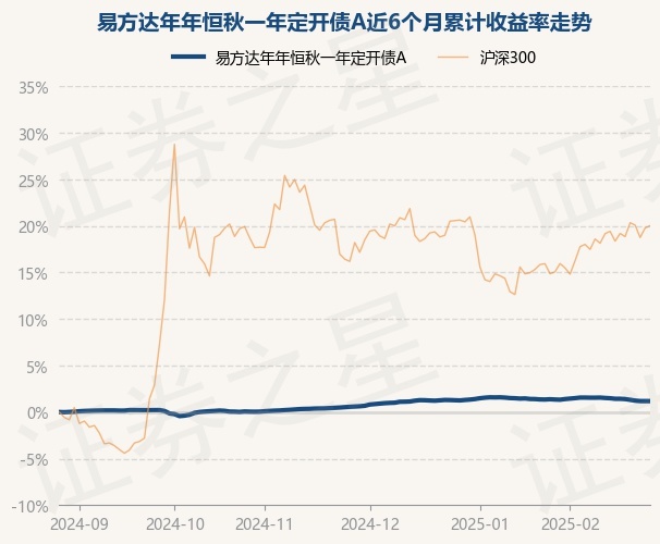 证券之星消息,2月27日,易方达年年恒秋一年定开债A最新单位净值为1.022元,累计净值为1.213元,较前一交易日上涨0.0%。历史数据显示该基金近1个月下跌0.25%,近3个月上涨0.54%,近6个月上涨1.14%,近1年上涨3.03%。该基金近6个月的累计收益率走势如下图: