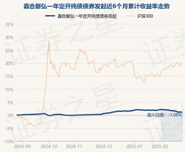 证券之星消息,2月27日,嘉合磐弘一年定开纯债债券发起最新单位净值为1.0554元,累计净值为1.0664元,较前一交易日下跌0.14%。历史数据显示该基金近1个月下跌0.92%,近3个月上涨0.81%,近6个月上涨1.06%,近1年上涨2.69%。该基金近6个月的累计收益率走势如下图: