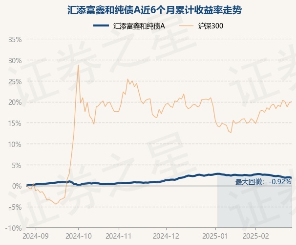 证券之星消息,2月27日,汇添富鑫和纯债A最新单位净值为1.038元,累计净值为1.083元,较前一交易日下跌0.11%。历史数据显示该基金近1个月下跌0.72%,近3个月上涨1.0%,近6个月上涨1.86%,近1年上涨3.43%。该基金近6个月的累计收益率走势如下图: