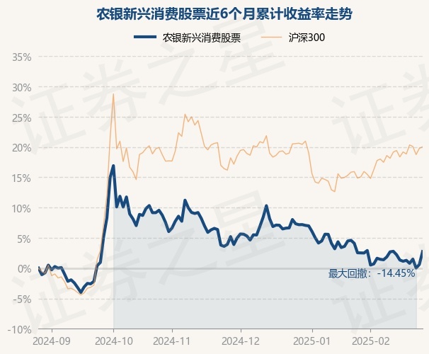 证券之星消息,2月27日,农银新兴消费股票最新单位净值为0.543元,累计净值为0.543元,较前一交易日上涨2.13%。历史数据显示该基金近1个月下跌0.17%,近3个月下跌2.34%,近6个月上涨2.74%,近1年下跌7.23%。该基金近6个月的累计收益率走势如下图: