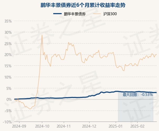 证券之星消息,2月27日,鹏华丰景债券最新单位净值为1.0573元,累计净值为1.0625元,较前一交易日下跌0.03%。历史数据显示该基金近1个月下跌0.35%,近3个月上涨2.07%,近6个月上涨2.97%,近1年上涨5.39%。该基金近6个月的累计收益率走势如下图: