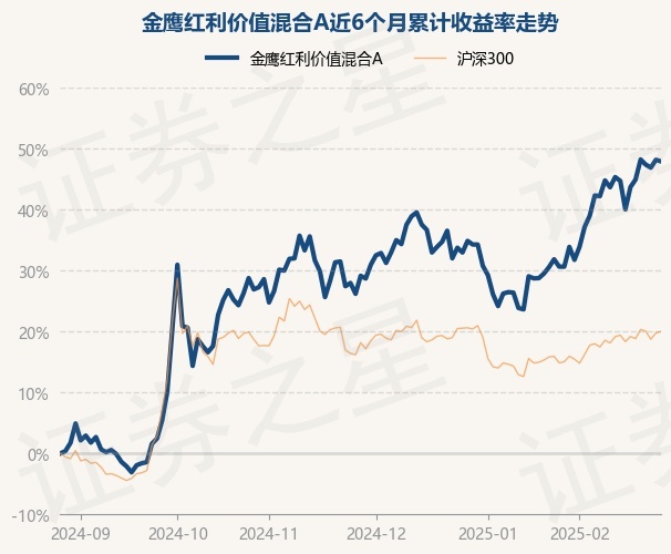 证券之星消息,2月27日,金鹰红利价值混合A最新单位净值为2.2622元,累计净值为4.0747元,较前一交易日下跌0.17%。历史数据显示该基金近1个月上涨12.26%,近3个月上涨14.54%,近6个月上涨47.93%,近1年上涨36.31%。该基金近6个月的累计收益率走势如下图: