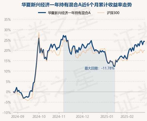 证券之星消息,2月27日,华夏新兴经济一年持有混合A最新单位净值为0.9685元,累计净值为0.9685元,较前一交易日下跌0.03%。历史数据显示该基金近1个月上涨6.78%,近3个月上涨2.41%,近6个月上涨24.26%,近1年上涨26.27%。该基金近6个月的累计收益率走势如下图: