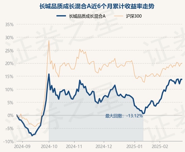 证券之星消息,2月27日,长城品质成长混合A最新单位净值为0.6286元,累计净值为0.6286元,较前一交易日上涨0.0%。历史数据显示该基金近1个月上涨9.42%,近3个月上涨7.62%,近6个月上涨14.48%,近1年上涨12.79%。该基金近6个月的累计收益率走势如下图: