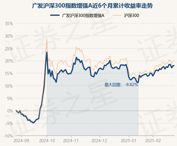 证券之星消息,2月27日,广发沪深300指数增强A最新单位净值为1.4539元,累计净值为1.4539元,较前一交易日上涨0.0%。历史数据显示该基金近1个月上涨2.88%,近3个月上涨2.38%,近6个月上涨18.14%,近1年上涨16.45%。该基金近6个月的累计收益率走势如下图: