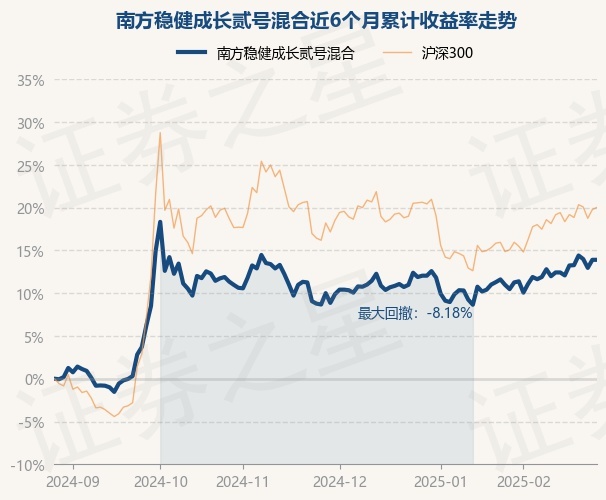 证券之星消息,2月27日,南方稳健成长贰号混合最新单位净值为0.3622元,累计净值为2.8974元,较前一交易日上涨0.0%。历史数据显示该基金近1个月上涨2.26%,近3个月上涨3.54%,近6个月上涨13.9%,近1年上涨7.57%。该基金近6个月的累计收益率走势如下图: