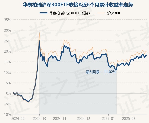 证券之星消息,2月27日,华泰柏瑞沪深300ETF联接A最新单位净值为0.9766元,累计净值为1.8896元,较前一交易日上涨0.21%。历史数据显示该基金近1个月上涨3.73%,近3个月上涨1.74%,近6个月上涨18.12%,近1年上涨14.54%。该基金近6个月的累计收益率走势如下图: