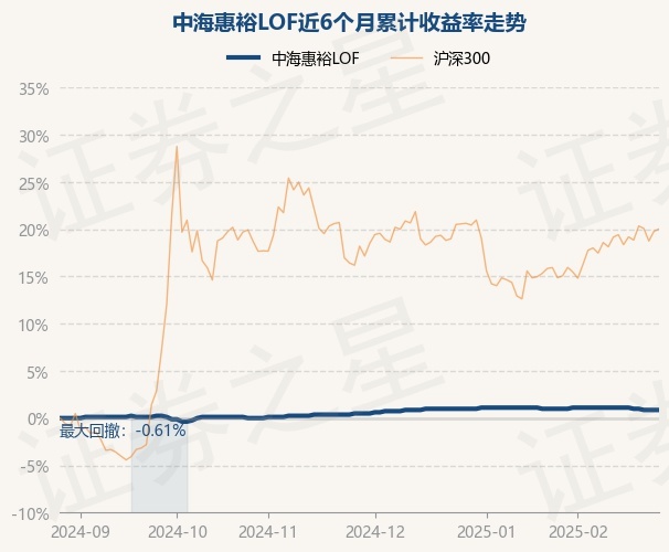 证券之星消息,2月27日,中海惠裕LOF最新单位净值为0.819元,累计净值为1.523元,较前一交易日上涨0.0%。历史数据显示该基金近1个月下跌0.24%,近3个月上涨0.37%,近6个月上涨0.86%,近1年上涨2.5%。该基金近6个月的累计收益率走势如下图:
