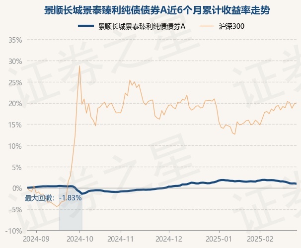 证券之星消息,2月27日,景顺长城景泰臻利纯债债券A最新单位净值为1.0585元,累计净值为1.0758元,较前一交易日下跌0.08%。历史数据显示该基金近1个月下跌0.68%,近3个月上涨1.08%,近6个月上涨0.97%,近1年上涨3.53%。该基金近6个月的累计收益率走势如下图:
