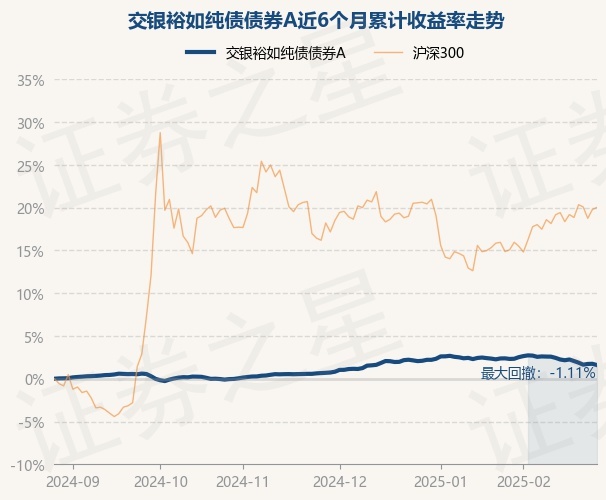 证券之星消息,2月27日,交银裕如纯债债券A最新单位净值为1.0734元,累计净值为1.2474元,较前一交易日下跌0.15%。历史数据显示该基金近1个月下跌0.9%,近3个月上涨0.9%,近6个月上涨1.59%,近1年上涨3.51%。该基金近6个月的累计收益率走势如下图:
