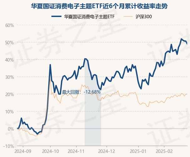 证券之星消息,2月27日,华夏国证消费电子主题ETF最新单位净值为0.9108元,累计净值为0.9108元,较前一交易日下跌0.98%。历史数据显示该基金近1个月上涨9.38%,近3个月上涨17.77%,近6个月上涨49.14%,近1年上涨48.7%。该基金近6个月的累计收益率走势如下图: