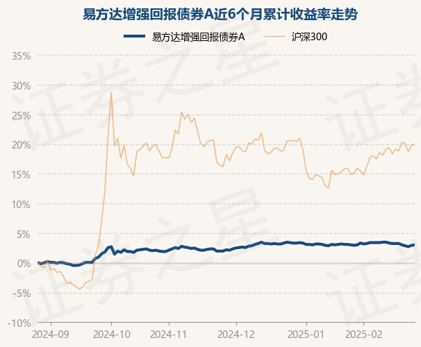 证券之星消息,2月27日,易方达增强回报债券A最新单位净值为1.352元,累计净值为2.593元,较前一交易日上涨0.07%。历史数据显示该基金近1个月下跌0.29%,近3个月上涨0.81%,近6个月上涨3.03%,近1年上涨6.32%。该基金近6个月的累计收益率走势如下图: