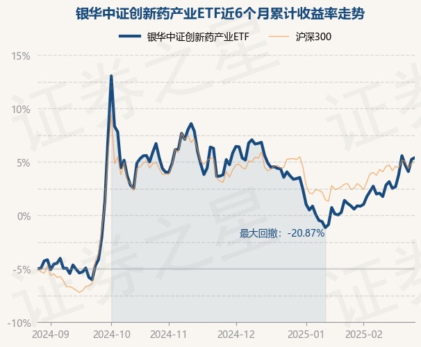 证券之星消息,2月27日,银华中证创新药产业ETF最新单位净值为0.7324元,累计净值为0.7324元,较前一交易日上涨0.26%。历史数据显示该基金近1个月上涨8.12%,近3个月上涨0.29%,近6个月上涨20.78%,近1年上涨0.96%。该基金近6个月的累计收益率走势如下图: