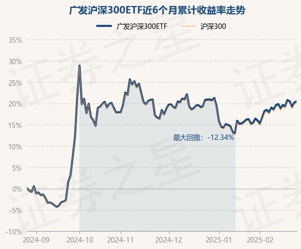 证券之星消息,2月27日,广发沪深300ETF最新单位净值为1.4762元,累计净值为1.4762元,较前一交易日上涨0.21%。历史数据显示该基金近1个月上涨3.88%,近3个月上涨1.72%,近6个月上涨20.47%,近1年上涨16.49%。该基金近6个月的累计收益率走势如下图: