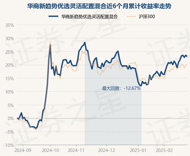 证券之星消息,2月27日,华商新趋势优选灵活配置混合最新单位净值为10.131元,累计净值为10.131元,较前一交易日下跌0.41%。历史数据显示该基金近1个月上涨5.63%,近3个月上涨2.07%,近6个月上涨23.08%,近1年上涨17.31%。该基金近6个月的累计收益率走势如下图: