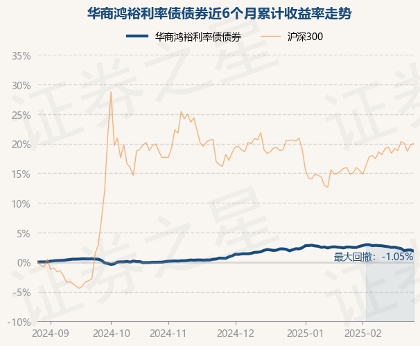 证券之星消息,2月27日,华商鸿裕利率债债券最新单位净值为1.0292元,累计净值为1.0382元,较前一交易日下跌0.18%。历史数据显示该基金近1个月下跌0.77%,近3个月上涨1.22%,近6个月上涨1.86%,近1年上涨3.0%。该基金近6个月的累计收益率走势如下图: