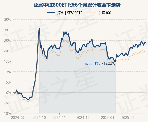 证券之星消息,2月27日,添富中证800ETF最新单位净值为1.0341元,累计净值为1.1461元,较前一交易日上涨0.07%。历史数据显示该基金近1个月上涨4.89%,近3个月上涨2.35%,近6个月上涨23.92%,近1年上涨16.52%。该基金近6个月的累计收益率走势如下图: