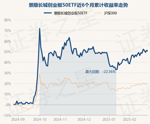 证券之星消息,2月27日,景顺长城创业板50ETF最新单位净值为0.9693元,累计净值为0.9693元,较前一交易日下跌0.48%。历史数据显示该基金近1个月上涨8.01%,近3个月上涨1.17%,近6个月上涨50.4%,近1年上涨33.2%。该基金近6个月的累计收益率走势如下图: