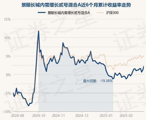 证券之星消息,2月27日,景顺长城内需增长贰号混合A最新单位净值为1.083元,累计净值为3.564元,较前一交易日上涨1.79%。历史数据显示该基金近1个月上涨5.15%,近3个月下跌3.13%,近6个月上涨14.36%,近1年下跌6.72%。该基金近6个月的累计收益率走势如下图: