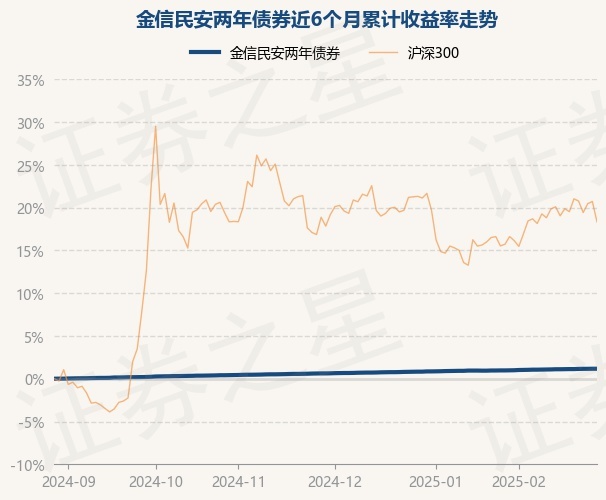 证券之星消息,2月28日,金信民安两年债券最新单位净值为1.0419元,累计净值为1.0419元,较前一交易日上涨0.0%。历史数据显示该基金近1个月上涨0.17%,近3个月上涨0.54%,近6个月上涨1.17%,近1年上涨2.45%。该基金近6个月的累计收益率走势如下图:
