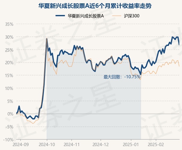 证券之星消息,2月28日,华夏新兴成长股票A最新单位净值为0.7608元,累计净值为0.7608元,较前一交易日下跌2.25%。历史数据显示该基金近1个月上涨6.23%,近3个月上涨7.05%,近6个月上涨26.91%,近1年上涨26.4%。该基金近6个月的累计收益率走势如下图: