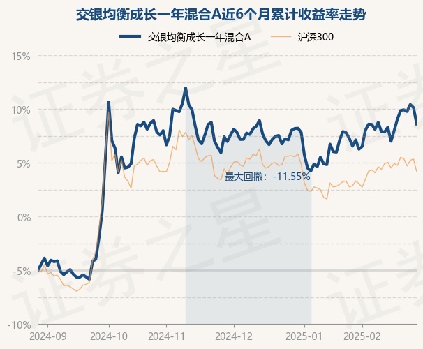 证券之星消息,2月28日,交银均衡成长一年混合A最新单位净值为0.8326元,累计净值为0.8956元,较前一交易日下跌2.33%。历史数据显示该基金近1个月上涨3.83%,近3个月上涨2.63%,近6个月上涨27.23%,近1年上涨14.34%。该基金近6个月的累计收益率走势如下图: