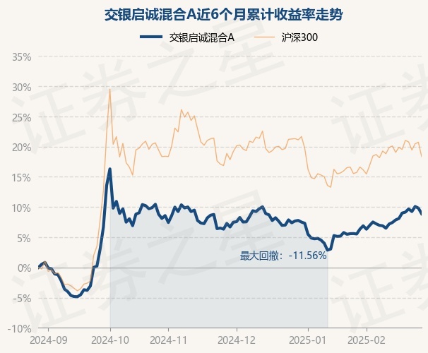 证券之星消息,2月28日,交银启诚混合A最新单位净值为1.1007元,累计净值为1.1007元,较前一交易日下跌0.85%。历史数据显示该基金近1个月上涨1.87%,近3个月上涨2.06%,近6个月上涨8.88%,近1年上涨8.15%。该基金近6个月的累计收益率走势如下图: