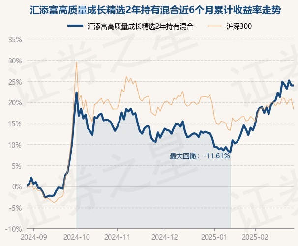 证券之星消息,2月28日,汇添富高质量成长精选2年持有混合最新单位净值为0.4808元,累计净值为0.4808元,较前一交易日上涨0.0%。历史数据显示该基金近1个月上涨5.51%,近3个月上涨7.15%,近6个月上涨19.54%,近1年上涨18.98%。该基金近6个月的累计收益率走势如下图: