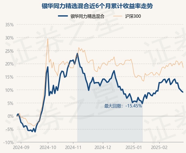 证券之星消息,2月28日,银华同力精选混合最新单位净值为0.7999元,累计净值为0.7999元,较前一交易日下跌0.27%。历史数据显示该基金近1个月下跌0.4%,近3个月下跌2.15%,近6个月上涨9.05%,近1年上涨4.03%。该基金近6个月的累计收益率走势如下图: