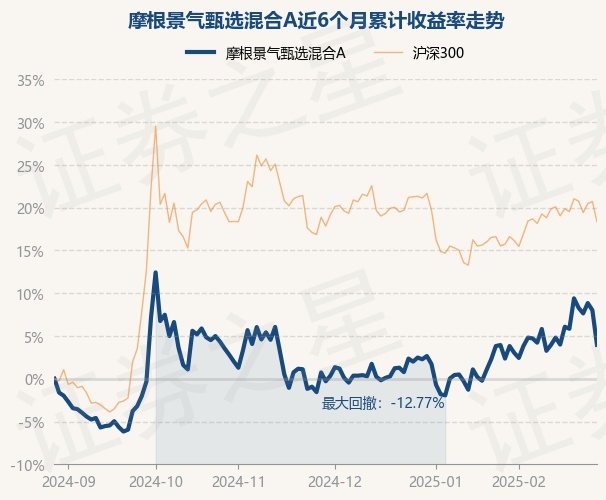 证券之星消息,2月28日,摩根景气甄选混合A最新单位净值为0.5255元,累计净值为0.5255元,较前一交易日下跌3.75%。历史数据显示该基金近1个月上涨0.9%,近3个月上涨4.27%,近6个月上涨3.96%,近1年下跌2.03%。该基金近6个月的累计收益率走势如下图: