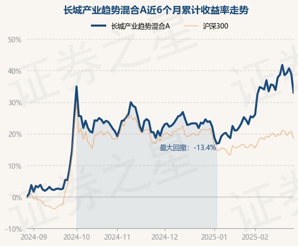 证券之星消息,2月28日,长城产业趋势混合A最新单位净值为0.8093元,累计净值为0.8093元,较前一交易日下跌4.28%。历史数据显示该基金近1个月上涨6.25%,近3个月上涨11.44%,近6个月上涨33.0%,近1年上涨18.67%。该基金近6个月的累计收益率走势如下图: