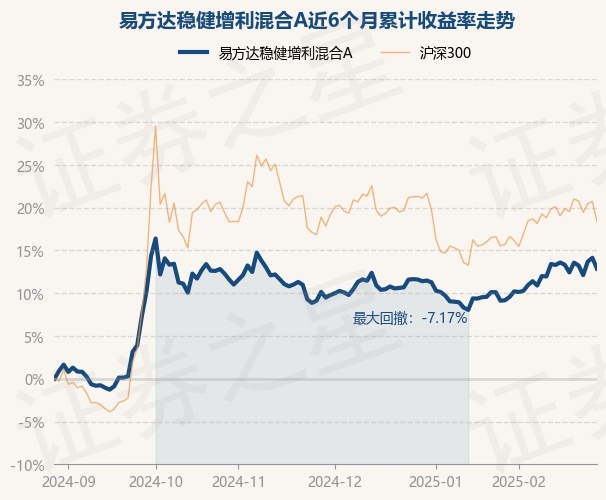 证券之星消息,2月28日,易方达稳健增利混合A最新单位净值为0.891元,累计净值为0.891元,较前一交易日下跌1.12%。历史数据显示该基金近1个月上涨2.4%,近3个月上涨3.08%,近6个月上涨12.86%,近1年上涨11.35%。该基金近6个月的累计收益率走势如下图: