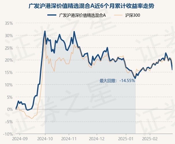 证券之星消息,2月28日,广发沪港深价值精选混合A最新单位净值为0.6423元,累计净值为0.6423元,较前一交易日下跌3.11%。历史数据显示该基金近1个月下跌0.77%,近3个月下跌3.08%,近6个月上涨16.04%,近1年上涨10.99%。该基金近6个月的累计收益率走势如下图: