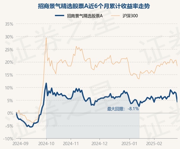证券之星消息,2月28日,招商景气精选股票A最新单位净值为0.964元,累计净值为0.964元,较前一交易日下跌3.14%。历史数据显示该基金近1个月下跌1.3%,近3个月下跌0.06%,近6个月上涨4.36%,近1年上涨12.74%。该基金近6个月的累计收益率走势如下图: