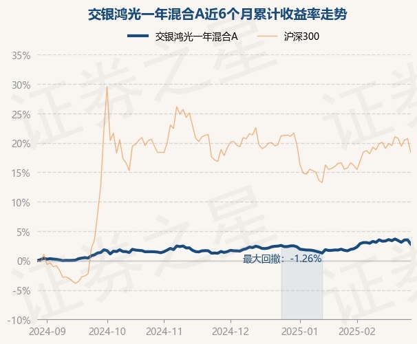 证券之星消息,2月28日,交银鸿光一年混合A最新单位净值为1.0385元,累计净值为1.0385元,较前一交易日下跌0.69%。历史数据显示该基金近1个月上涨0.78%,近3个月上涨1.41%,近6个月上涨2.8%,近1年上涨4.39%。该基金近6个月的累计收益率走势如下图: