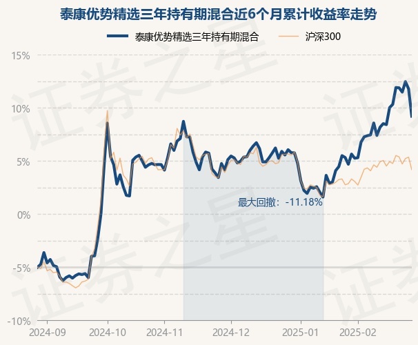 泰康优势精选三年持有期混合为混合型-偏股基金,根据最新一期基金季报显示,该基金资产配置:股票占净值比92.19%,债券占净值比0.79%,现金占净值比8.56%。基金十大重仓股如下: