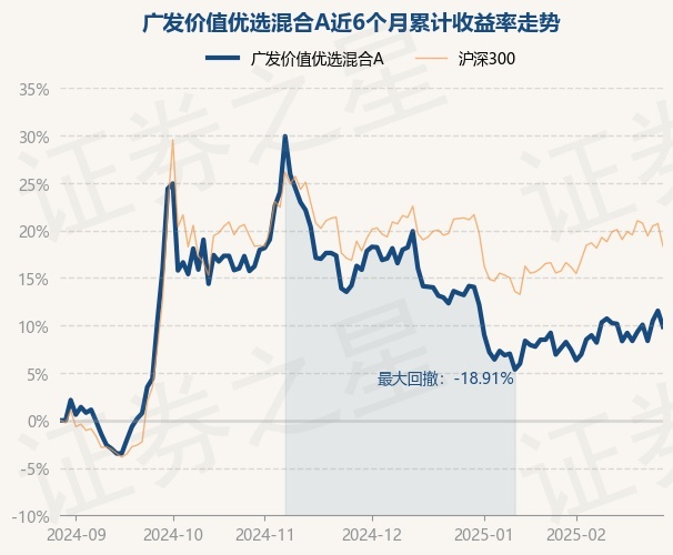 证券之星消息,2月28日,广发价值优选混合A最新单位净值为0.948元,累计净值为0.948元,较前一交易日下跌1.51%。历史数据显示该基金近1个月上涨2.25%,近3个月下跌5.17%,近6个月上涨9.86%,近1年上涨7.76%。该基金近6个月的累计收益率走势如下图: