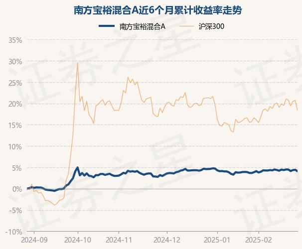 证券之星消息,2月28日,南方宝裕混合A最新单位净值为1.096元,累计净值为1.096元,较前一交易日下跌0.32%。历史数据显示该基金近1个月下跌0.02%,近3个月上涨1.09%,近6个月上涨4.08%,近1年上涨5.44%。该基金近6个月的累计收益率走势如下图:
