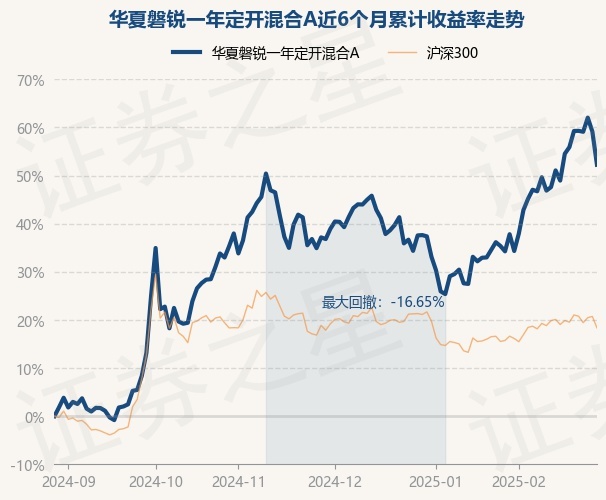 证券之星消息,2月28日,华夏磐锐一年定开混合A最新单位净值为1.3389元,累计净值为1.3389元,较前一交易日下跌4.33%。历史数据显示该基金近1个月上涨13.34%,近3个月上涨11.28%,近6个月上涨52.23%,近1年上涨44.2%。该基金近6个月的累计收益率走势如下图: