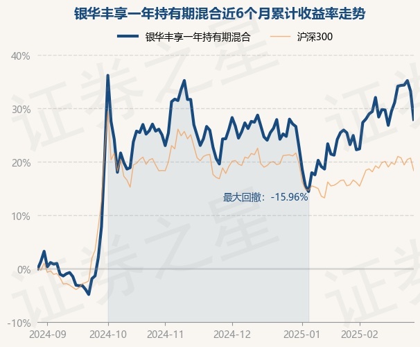 证券之星消息,2月28日,银华丰享一年持有期混合最新单位净值为0.7822元,累计净值为0.7822元,较前一交易日下跌3.99%。历史数据显示该基金近1个月上涨4.63%,近3个月上涨2.89%,近6个月上涨27.94%,近1年上涨16.12%。该基金近6个月的累计收益率走势如下图: