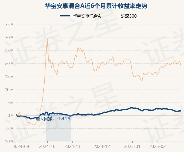 证券之星消息,2月28日,华宝安享混合A最新单位净值为1.1357元,累计净值为1.1357元,较前一交易日下跌0.04%。历史数据显示该基金近1个月下跌1.04%,近3个月上涨1.25%,近6个月上涨1.61%,近1年上涨3.9%。该基金近6个月的累计收益率走势如下图: