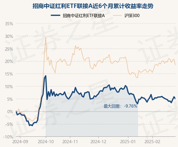 证券之星消息,2月28日,招商中证红利ETF联接A最新单位净值为1.0608元,累计净值为1.1138元,较前一交易日下跌0.69%。历史数据显示该基金近1个月下跌1.54%,近3个月下跌0.71%,近6个月上涨5.06%,近1年上涨2.7%。该基金近6个月的累计收益率走势如下图: