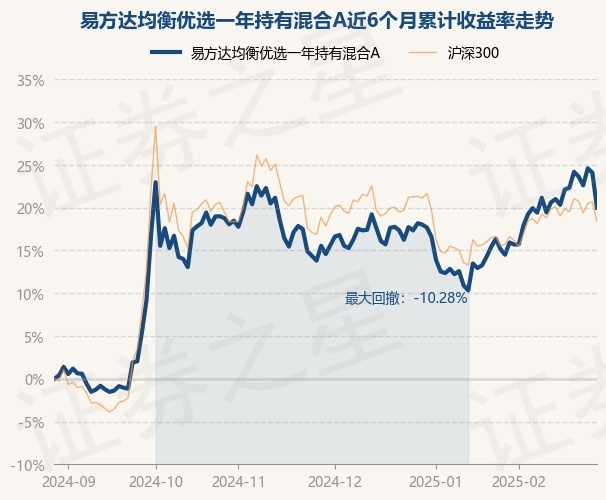 证券之星消息,2月28日,易方达均衡优选一年持有混合A最新单位净值为1.0875元,累计净值为1.0875元,较前一交易日下跌3.31%。历史数据显示该基金近1个月上涨3.72%,近3个月上涨4.72%,近6个月上涨19.98%,近1年上涨15.14%。该基金近6个月的累计收益率走势如下图: