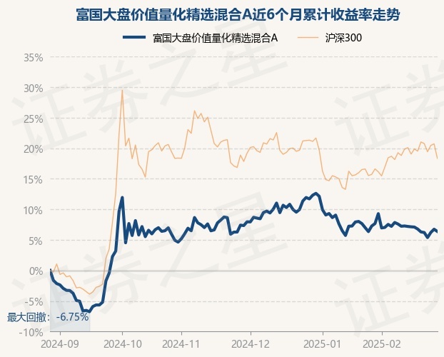 证券之星消息,2月28日,富国大盘价值量化精选混合A最新单位净值为1.6095元,累计净值为1.6095元,较前一交易日下跌0.34%。历史数据显示该基金近1个月下跌2.67%,近3个月下跌0.89%,近6个月上涨6.38%,近1年上涨13.0%。该基金近6个月的累计收益率走势如下图: