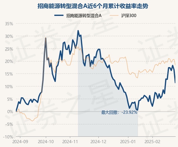 证券之星消息,2月28日,招商能源转型混合A最新单位净值为0.555元,累计净值为0.555元,较前一交易日下跌4.38%。历史数据显示该基金近1个月上涨7.73%,近3个月下跌8.16%,近6个月上涨11.47%,近1年下跌4.8%。该基金近6个月的累计收益率走势如下图:
