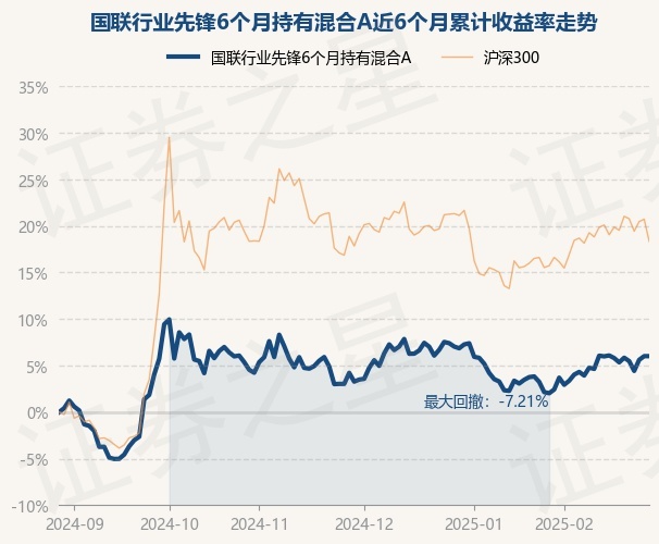 证券之星消息,2月28日,国联行业先锋6个月持有混合A最新单位净值为0.8673元,累计净值为0.8673元,较前一交易日上涨0.0%。历史数据显示该基金近1个月上涨1.27%,近3个月上涨1.69%,近6个月上涨5.01%,近1年上涨16.92%。该基金近6个月的累计收益率走势如下图: