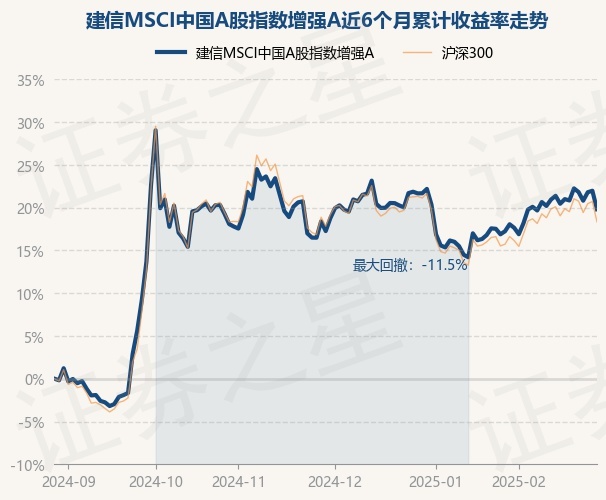 证券之星消息,2月28日,建信MSCI中国A股指数增强A最新单位净值为1.1746元,累计净值为1.4356元,较前一交易日下跌1.77%。历史数据显示该基金近1个月上涨1.85%,近3个月上涨2.17%,近6个月上涨19.81%,近1年上涨15.09%。该基金近6个月的累计收益率走势如下图: