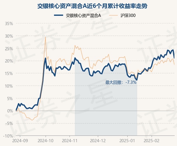 证券之星消息,2月28日,交银核心资产混合A最新单位净值为1.8142元,累计净值为1.8142元,较前一交易日下跌2.55%。历史数据显示该基金近1个月上涨3.63%,近3个月上涨5.27%,近6个月上涨21.11%,近1年上涨22.74%。该基金近6个月的累计收益率走势如下图:
